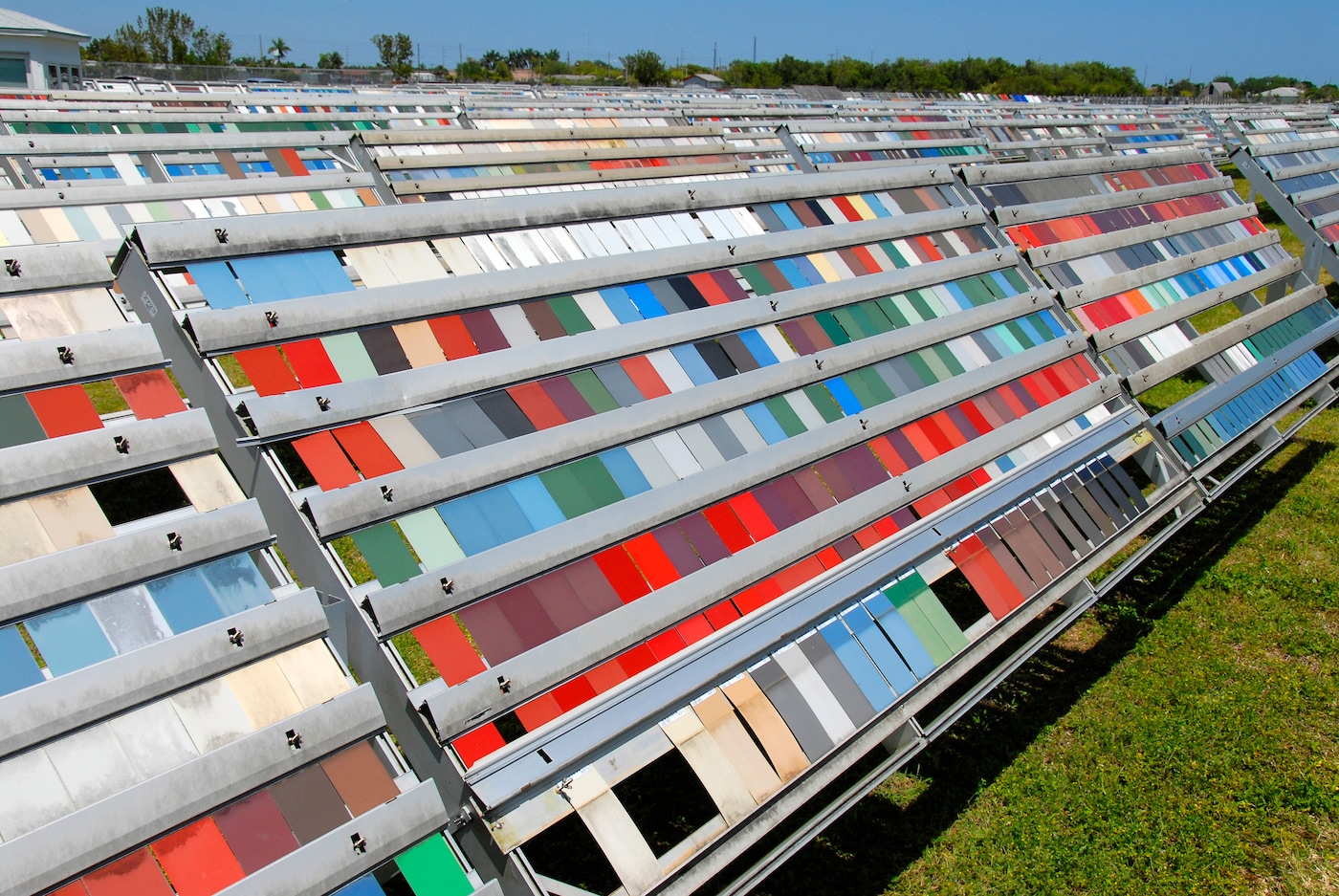 In fact, AkzoNobel has the largest installation at the sprawling seven-acre facility. At any given time, around 100,000 metal panels (measuring four inches by eight inches) are being bombarded by everything the baking heat and unforgiving climate can throw at them.