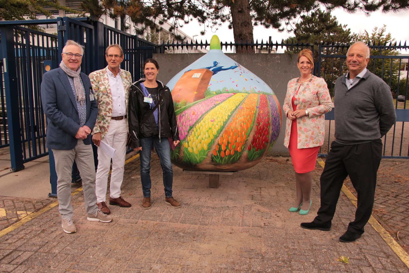 Donderdagochtend 30 september is de Reuzenbol ‘Kleurrijk Bollenstreek’ onthuld bij AkzoNobel aan de Rijksstraatweg 31 in Sassenheim. Met deze onthulling staan er nu 13 Reuzenbollen in de Bollenstreek. Langs deze Reuzenbollen is de fietsroute van de ‘Giant Tulip bulbs’ uitgezet.