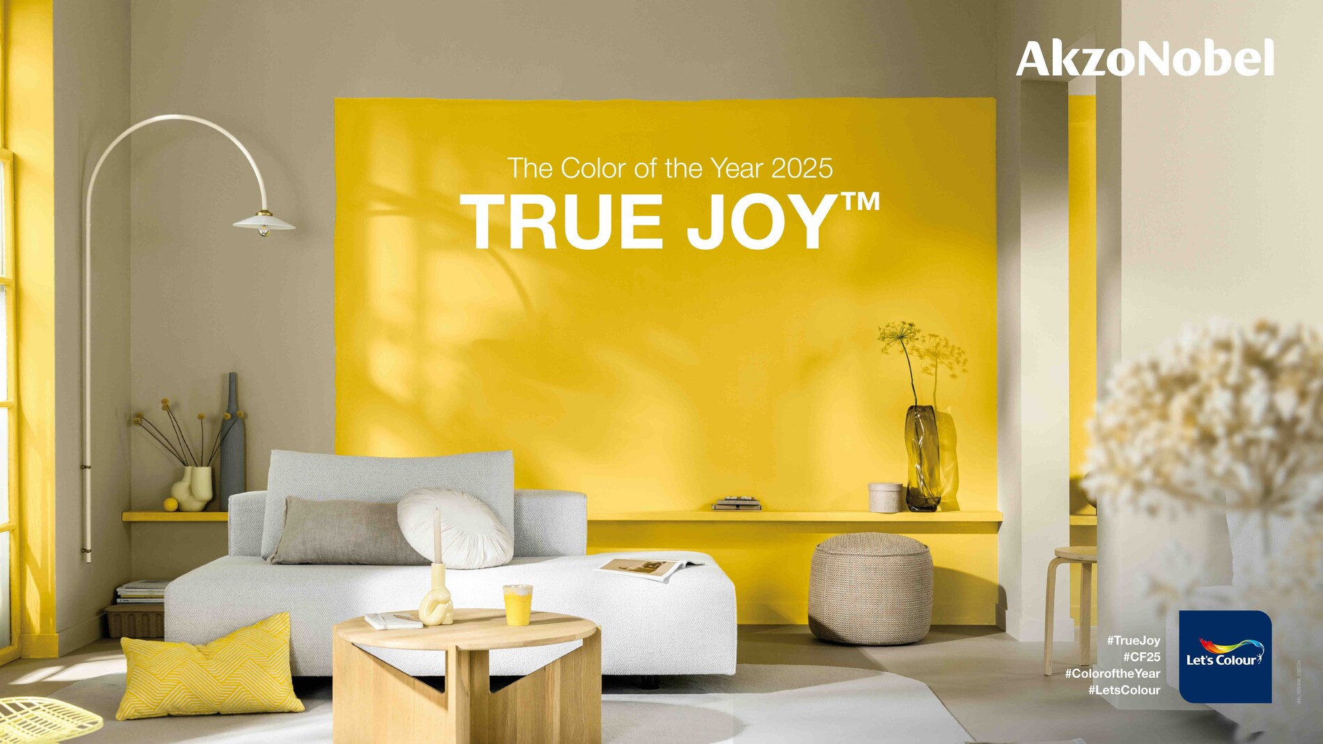 Om någon kulör kan få dig att le så är det True Joy™, AkzoNobels och Nordsjös Årets kulör 2025. Denna soliga, gula kulör har i uppdrag att fylla våra hem med optimism, stolthet och kreativitet. Med stöd av tre kompletterande kulörpaletter är Årets kulör 2025 True Joy™, resultatet av omfattande forskning om kulör, design, kulturella, ekonomiska och sociala trender. Det är en kulör som identifierar en önskan om ett glädjefyllt språng ut i den okända, att hylla hantverket och omfamna vilka vi är.