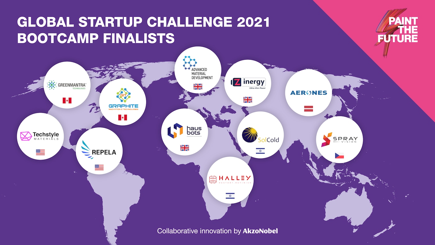 De Paint the Future wereldwijde startup challenge heeft 11 finalisten uitgenodigd om deel te nemen aan een driedaagse bootcamp dat plaatsvindt in Amsterdam van 16 tot en met 18 november. De startups en AkzoNobel-experts zullen elkaar persoonlijk ontmoeten om mogelijke samenwerkingen te verkennen.