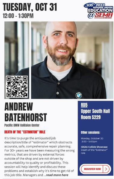 Don’t miss these invaluable SCRS Repairer Driven Educational Sessions! For more information and to sign-up for these valuable educational sessions, visit https://scrs.com/sema-rde-registration/.