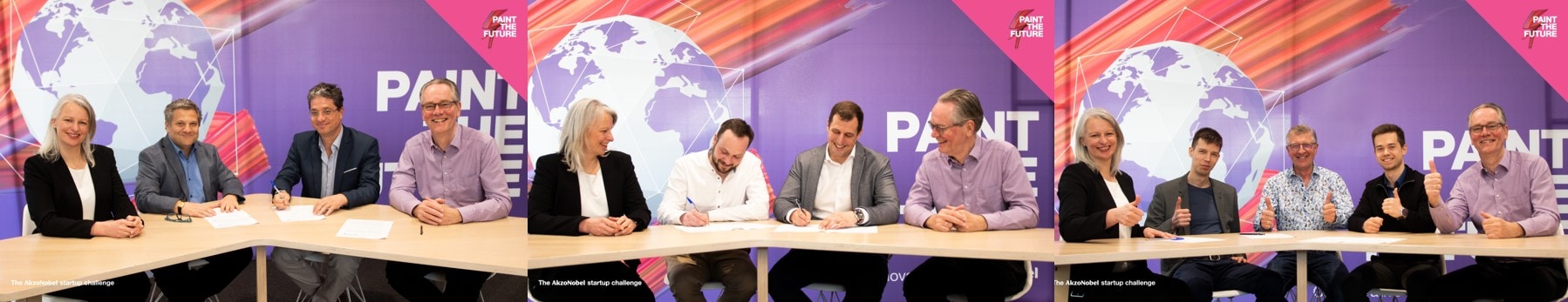 It’s the next step of a continuing collaborative innovation journey. The startups had the unique opportunity to explore their solutions with their mentors and industry experts through each phase of the global startup challenge, including an intense three-day bootcamp. Now having signed the letters of intent, they will develop their solutions even further with AkzoNobel.